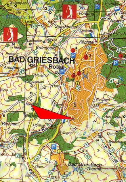Die Ferienwohnung liegt in einer ruhigen Wohngegend zwischen Altstadt und Therme, leichte Hanglage. Die große Südwest-Terrasse ist von der Straße nicht einsehbar, so dass Sie ungestört draußen sitzen können. Der Garten ist vollständig eingezäunt. Fuß- und Wanderwege sowie Parks und Einkaufsmöglichkeiten sind etwa 200 m entfernt. Therme und Altstadt sind sowohl zu Fuß als auch mit dem Auto günstig zu erreichen (ca. 1 km). Zu den 6 Golfplätzen und dem Golfodrom sind es mit dem Auto nur wenige Minuten. |